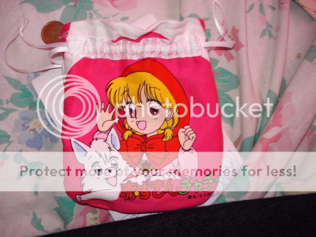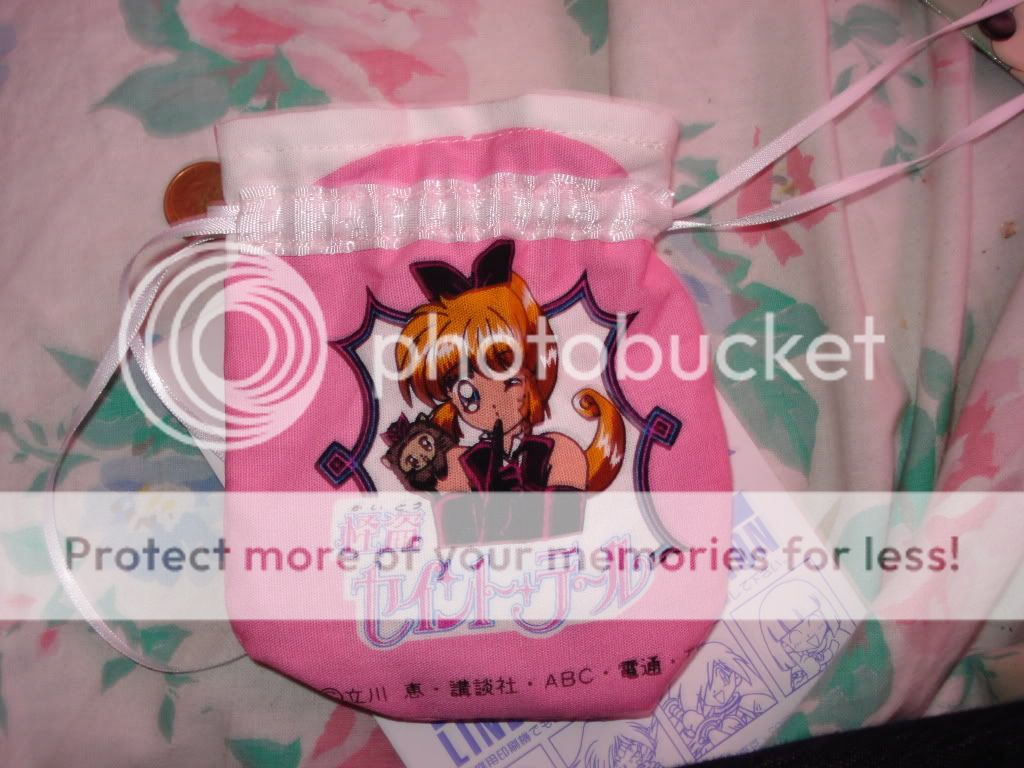 - 2 small drawstring bags with anime characters, going to use them for dice bags. They come filled with candy ^_^.