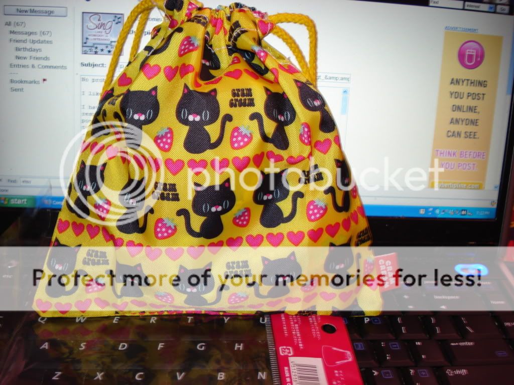 I love everything I got in the order. I bought a Delicious Sweet wash cloth, which will be framed. I was worried it was going to come folded but it came flat, which was excellent. The other thing I ordered was a Cram Cream bag, which has black cats and strawberries. I am using it as my main bag to hold the three other bags that have D&D stuff, this is the two little bags that have all my dice and the other bag with my white board markers in them. I really like the material the bag it is made out of it, it's a plastic like material. I'm very pleased with the order and will definitely order from the Rainbowatz site again. The items I bought were as described (in new condition) and I was informed when I the items I ordered were shipped out. I am already thinking of the items I like to buy for a second order. I'll probably try to keep it small, probably only a couple of things.