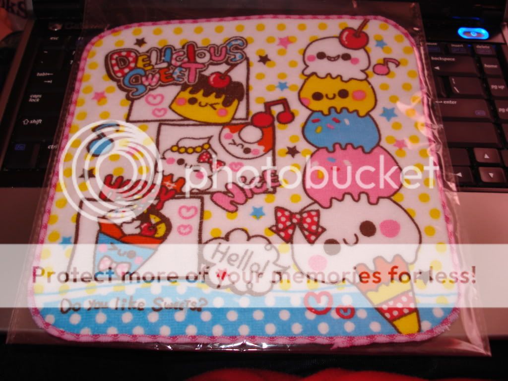 - A small kawaii order from Rainbowcatz website. I bought another small drawstring bag and a washcloth. I am going to use the drawstring bag for another dice bag (I love having variety) and the washcloth I am probably going to frame. The washcloth is from one of my favourite kawaii lines, Delicous Sweets, I was quite pleased to find other items other then the pencil case. There is is a sticker sack, pencil and a memo pad I would love to buy. This is a kawaii store in Canada which means cheaper shipping for me. The shipping for my items were $1.55 and I only had bought $4.00 worth of items.